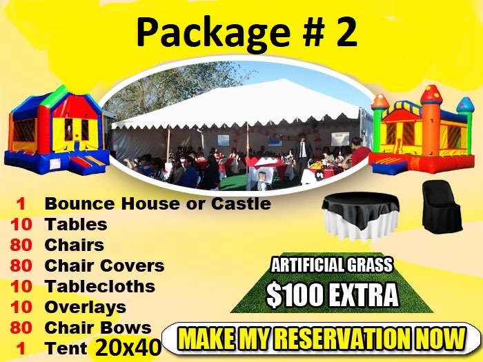 1 tent 20x40 10 tables 80 chairs 10 tablecloths 10 overlays 80 chair covers 80 bows 1 jumper